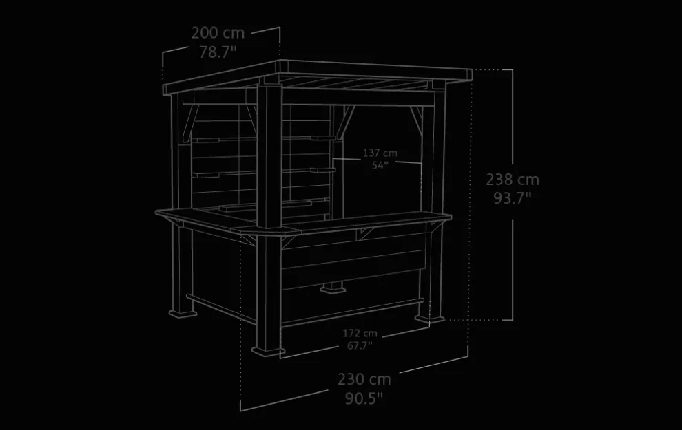 - Heavy-duty construction: Having durable weather-resistant resin construction, metal rod reinforcement and grounded metal feet means this gazebo isn’t going anywhere. It can also be fastened to the ground and has 16 anchor points built in. Screws not included.