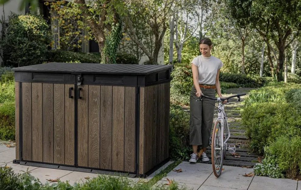 - Heavy-duty shed construction: This Walnut brown shed has thick double-walls and is steel-reinforced for strength.