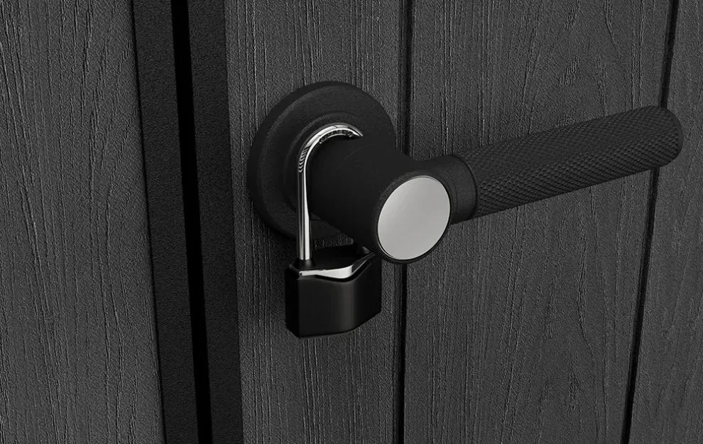 - Lockable shed doors: To keep items secure, this shed features a spot for a padlock so you can easily lock your items away (lock not included).