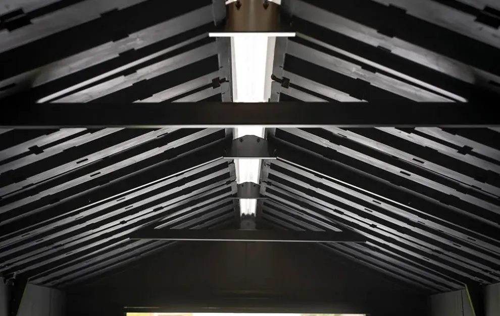 - Peak roof design: The classic peak roof design means added vertical storage space as well as better water runoff.