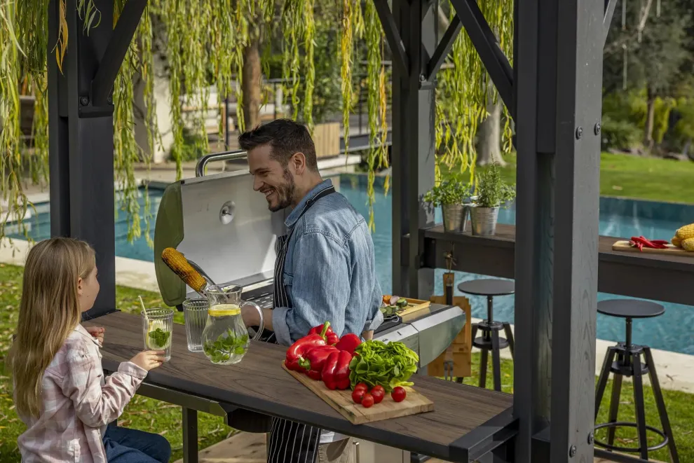 - Heavy-duty construction: The grill gazebo is made from a durable, weather-resistant resin. It’s also reinforced with metal rods and even has grounded metal feet.