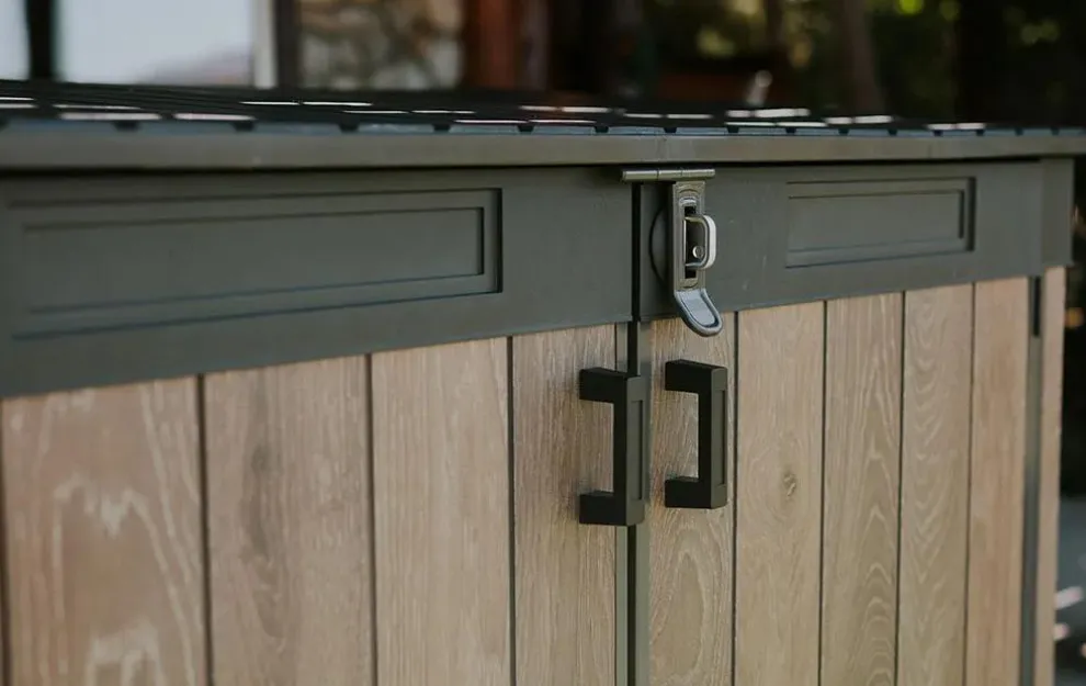 - Double-door shed: The double doors can help you more easily access your stored items like gardening equipment or patio cushions.